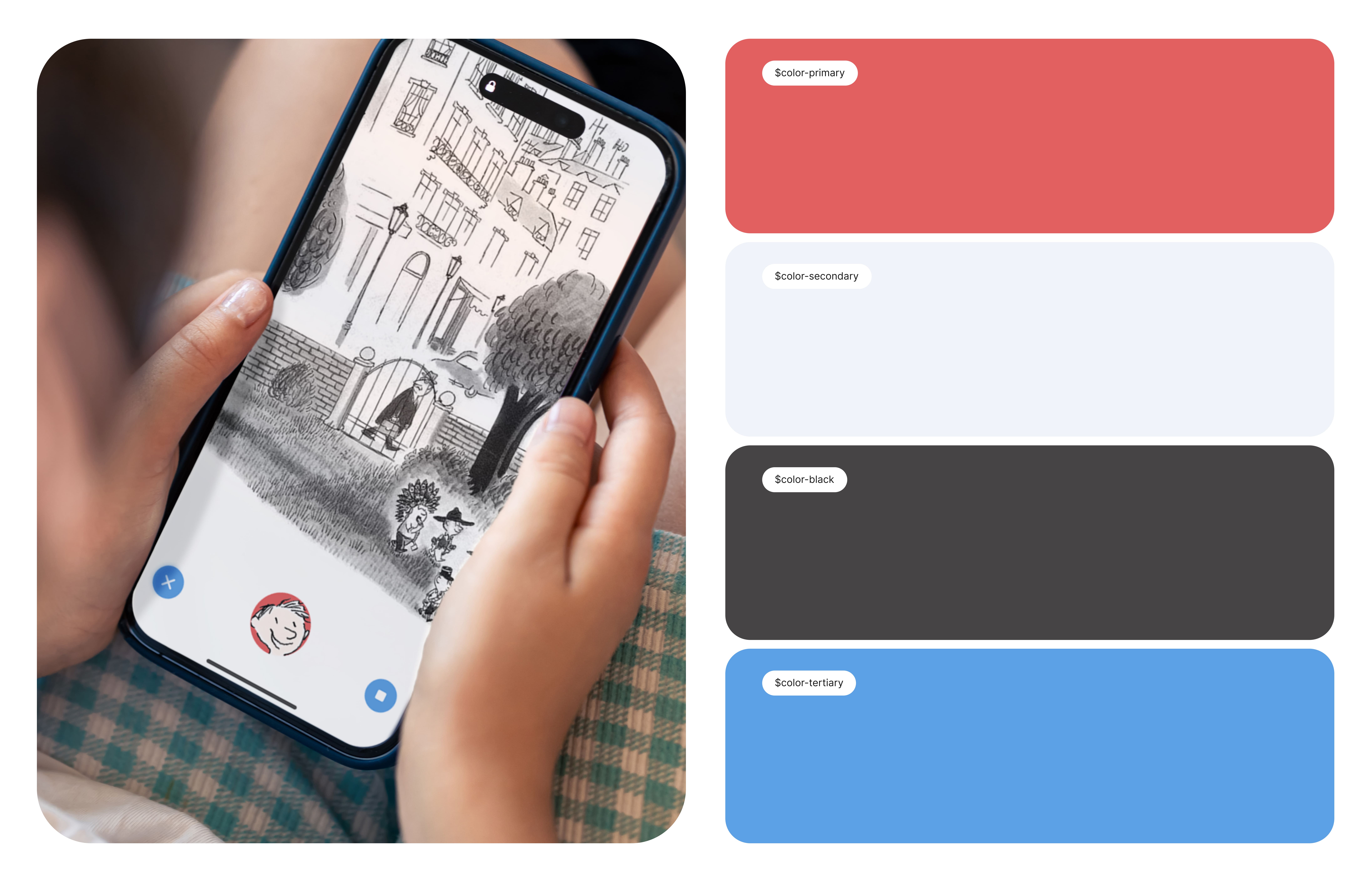 I led the UX/UI and interaction design, creating a safe, curated experience that promotes reading through short, story-driven conversations using text and voice, positioned as a companion to the physical book. The interface was conceived as a sober and discreet framework that enhances the original illustrations without competing with them, supported by a color palette inspired by the character’s French origins, subtly reinforcing its cultural identity. The design was systematized using atomic design principles, with documented components and design tokens to ensure consistency and scalability, while responsible usage was reinforced through limited sessions, proactive prompts encouraging offline activities, and a secure, PIN-protected adult area, resulting in a controlled digital extension of the book’s narrative universe.